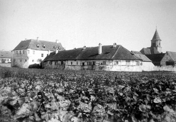 Ansicht der Burg aus westlicher Richtung mit dem Ökonomiehof im Vordergrund, Fotografie: G. v. Volckamer um 1894 (StadtMN)